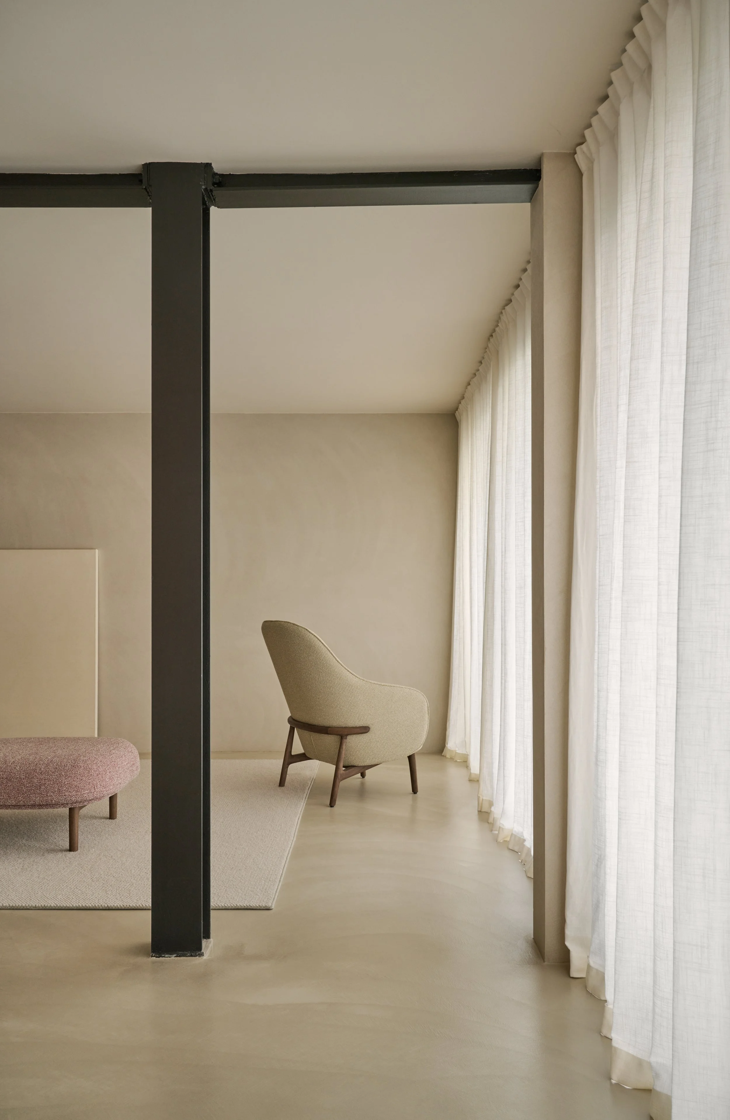 After the design of the Mela chair, a collection of upholstered furniture was developed based on the same design language the Mela lounge collection.