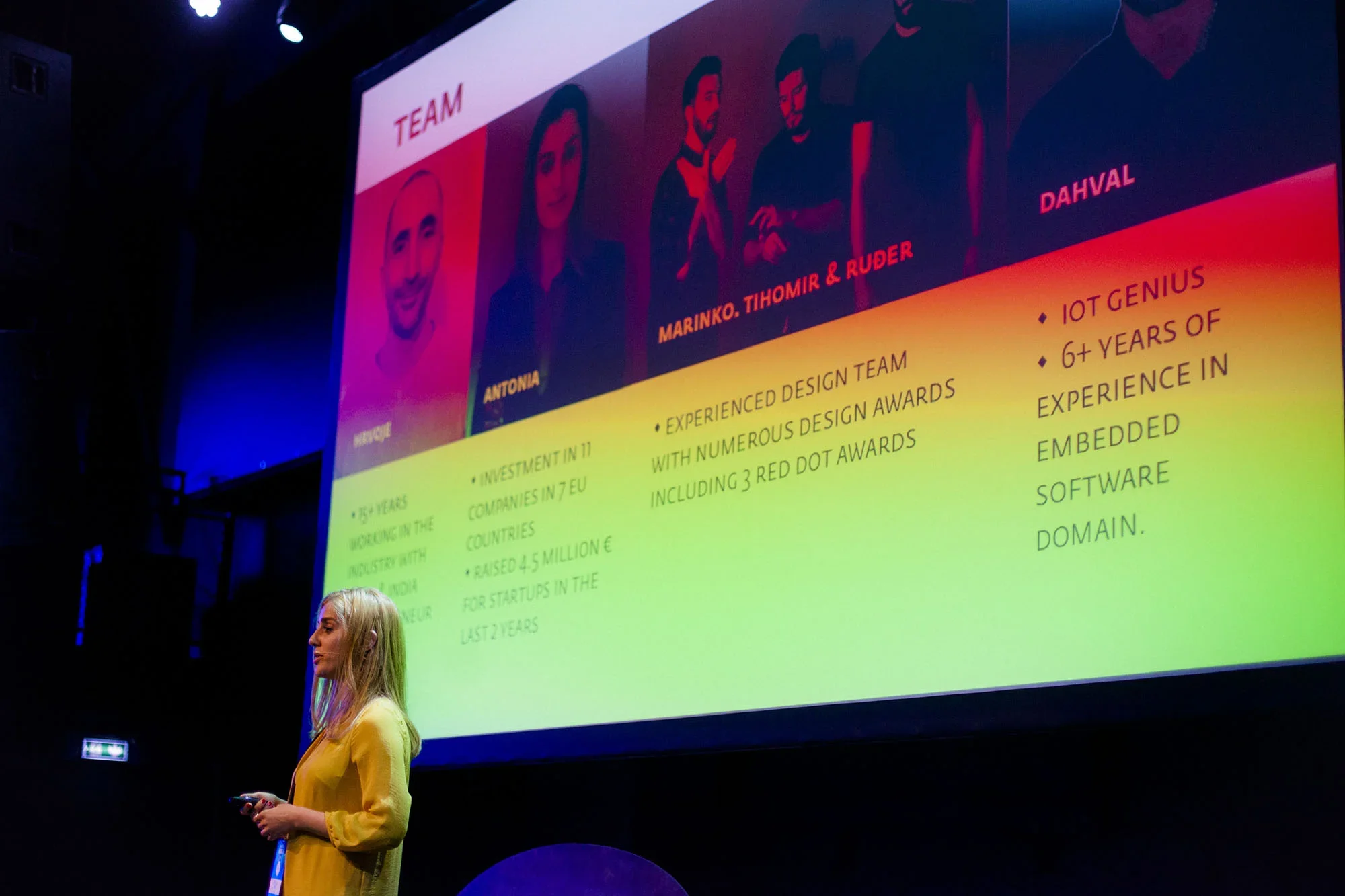 One of Vebbu's co-founders Antonia pitching in front of a chosen crowd of investors and journalists.